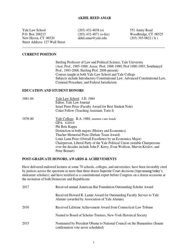 Over the next 13 modules, professor akhil amar will teach you how to go beyond the text of the u.s. Court of appeals, 1st circuit, professor amar joined the yale faculty in 1985. Akhil reed amar is sterling professor of law and political science at yale university, where he teaches constitutional law in both yale college he is a member of the american academy of arts and sciences and in 2008 he received the devane medal—yale's highest award for teaching excellence. Akhil reed amar, professor yale law school. An introduction to basic techniques of constitutional interpretation.